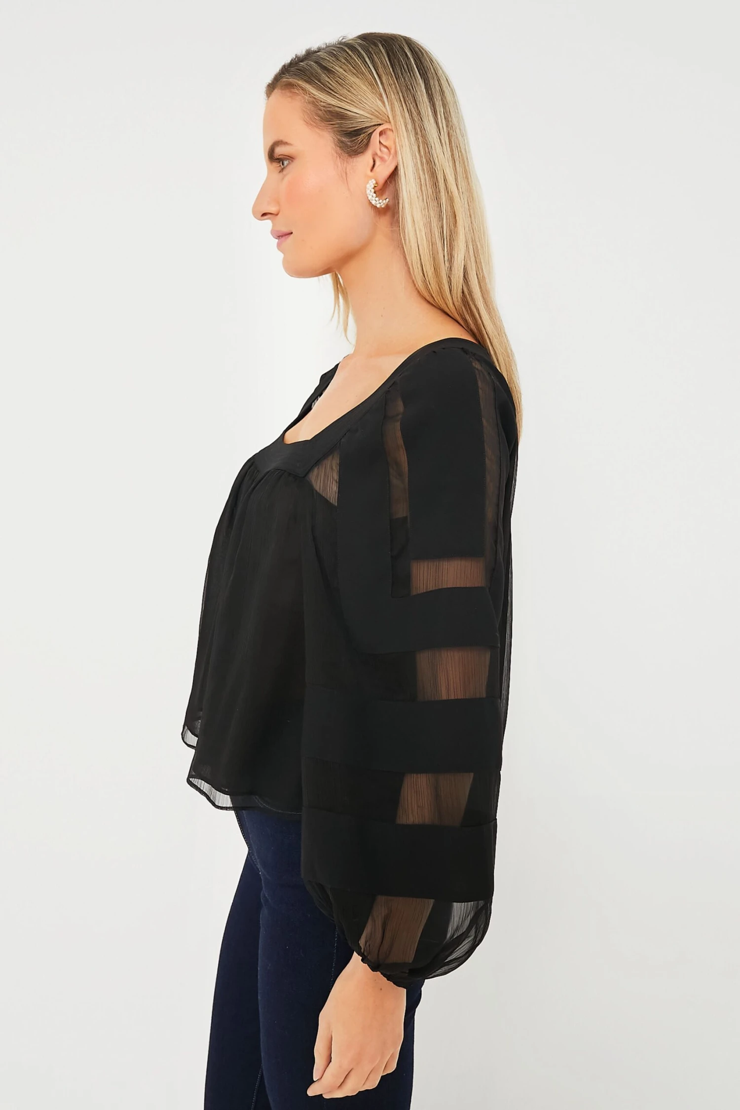 - Sheer panels at sleeves