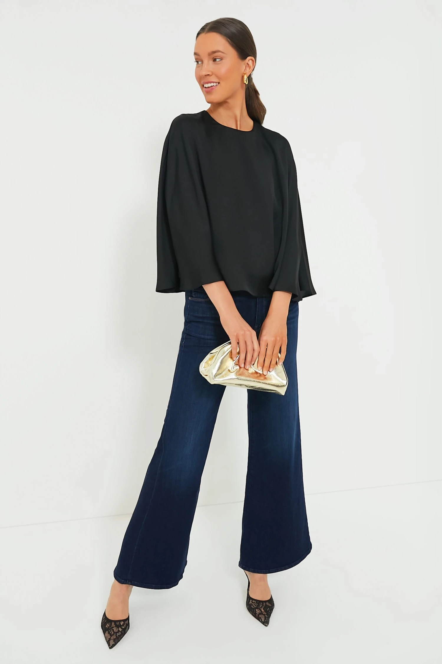 Flowy, feminine, and fabulous, the Black Satin Twill Selma Cape Blouse is the effortlessly elevated style you’ve been searching for. With a classic round neckline, swingy cape sleeves, and a cropped hem length to balance out the slightly boxy fit, this top is the kind of piece that lends itself to evening ensembles. Pair it with slim black trousers and heels to create a sleek set, or try it with dark wash denim and booties for a date night outfit that’s sure to earn you some compliments.
