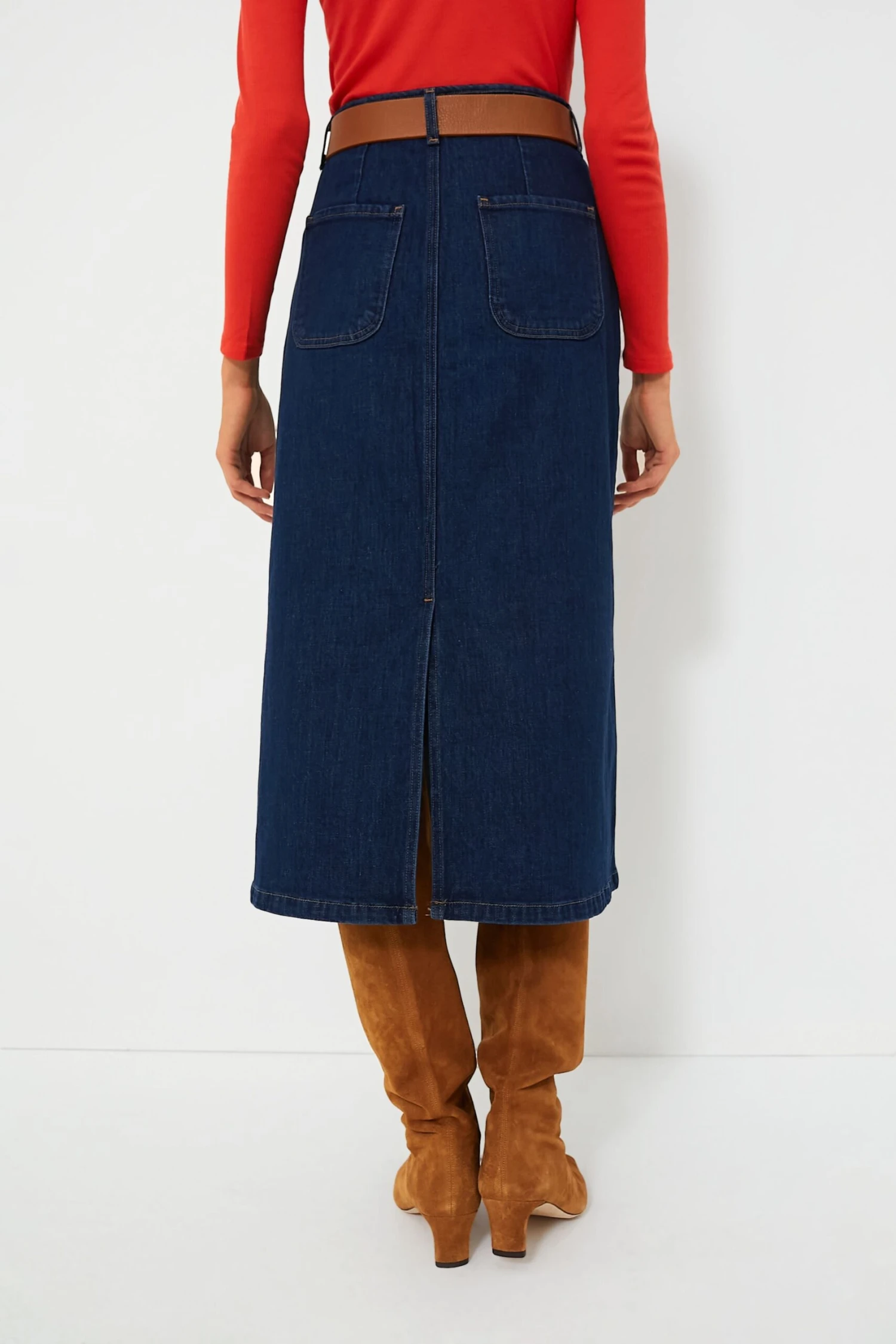 Looking for an easy way to elevate your day-to-day wardrobe? The Ink Jocelyn Skirt is for you! Made from lightweight comfort stretch denim, this endlessly versatile piece features a high rise silhouette, front patch pockets and a back slit for easy movement. Pairs with a plethora of shirts and sweaters, this stunner is about to become your go-to!