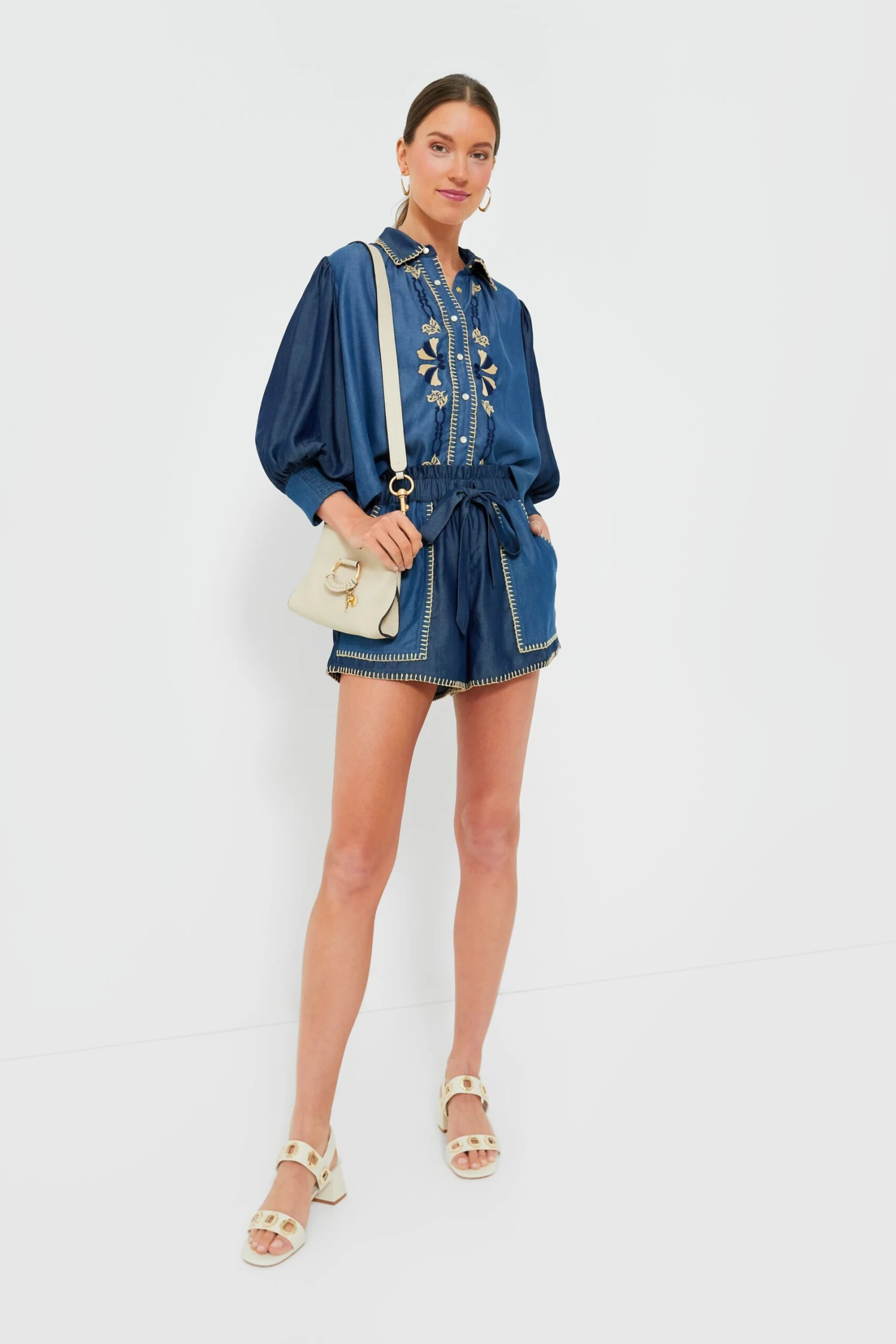 The Light and Dark Blue Moni Shorts are a bohemian, free-spirited style that will be a go-to staple during the warm-weather months. These are created for a high rise, paperbag silhouette with a drawstring waist, front self tie, and oversized patch pockets. The contrast seams and dual-tone design are among our favorite details- pair with a simple white tee or with the Light and Dark Blue Elisa Shirt for a chic matching set.