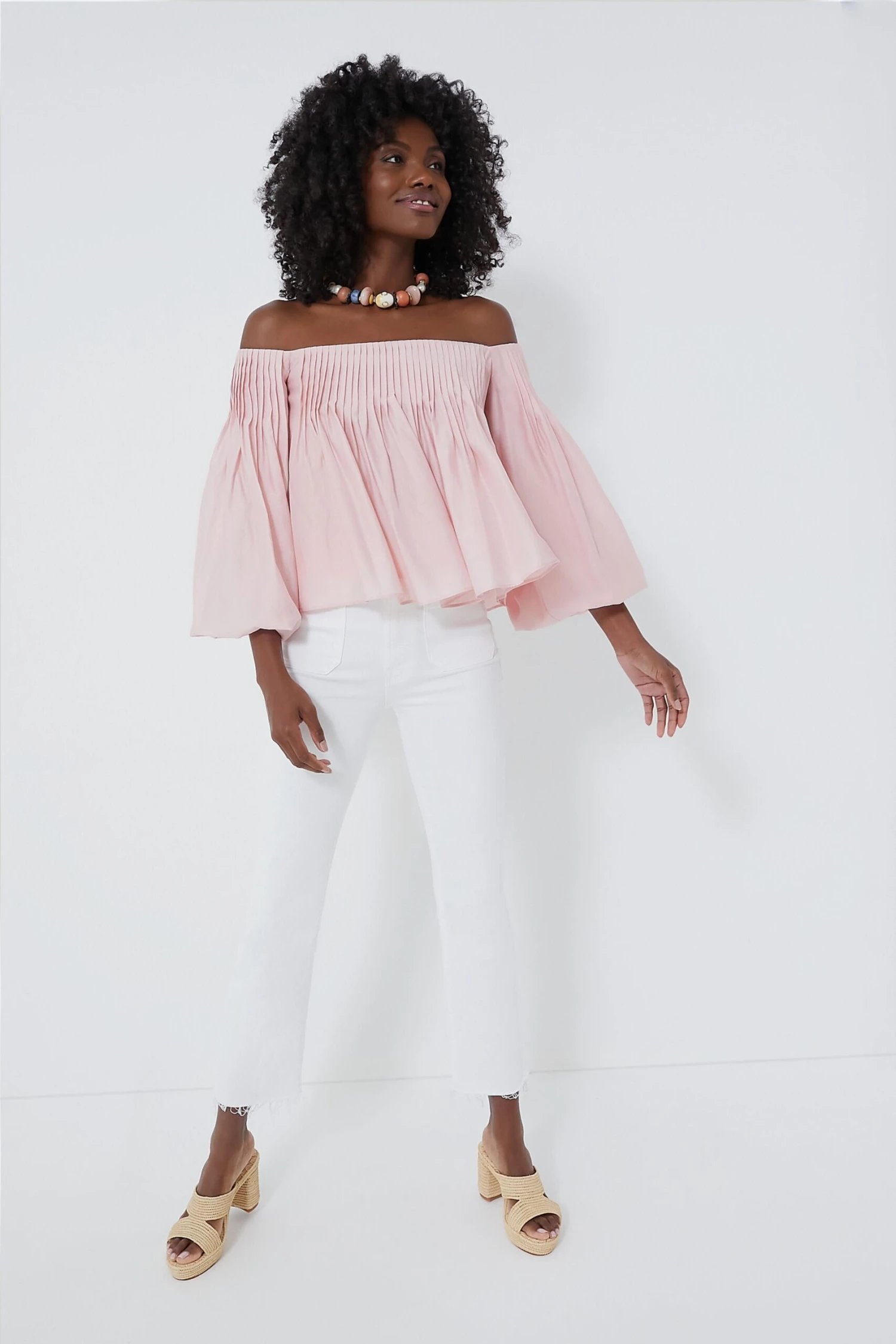 The Light Pink Pleated Portia Top is the ultimate flirty and feminine number that you’ve been missing. An off the shoulder necklines boasts a sassy dose of skin and the pleated bodice adds an elevated finish. Lightweight with a linen feel, this blouse features a silicone band on the top edge so you won’t have to worry about a wardrobe mishap. From date night to sunset drinks with the gals, pair this beauty with your go-to denim and a statement necklace for an effortlessly chic look.