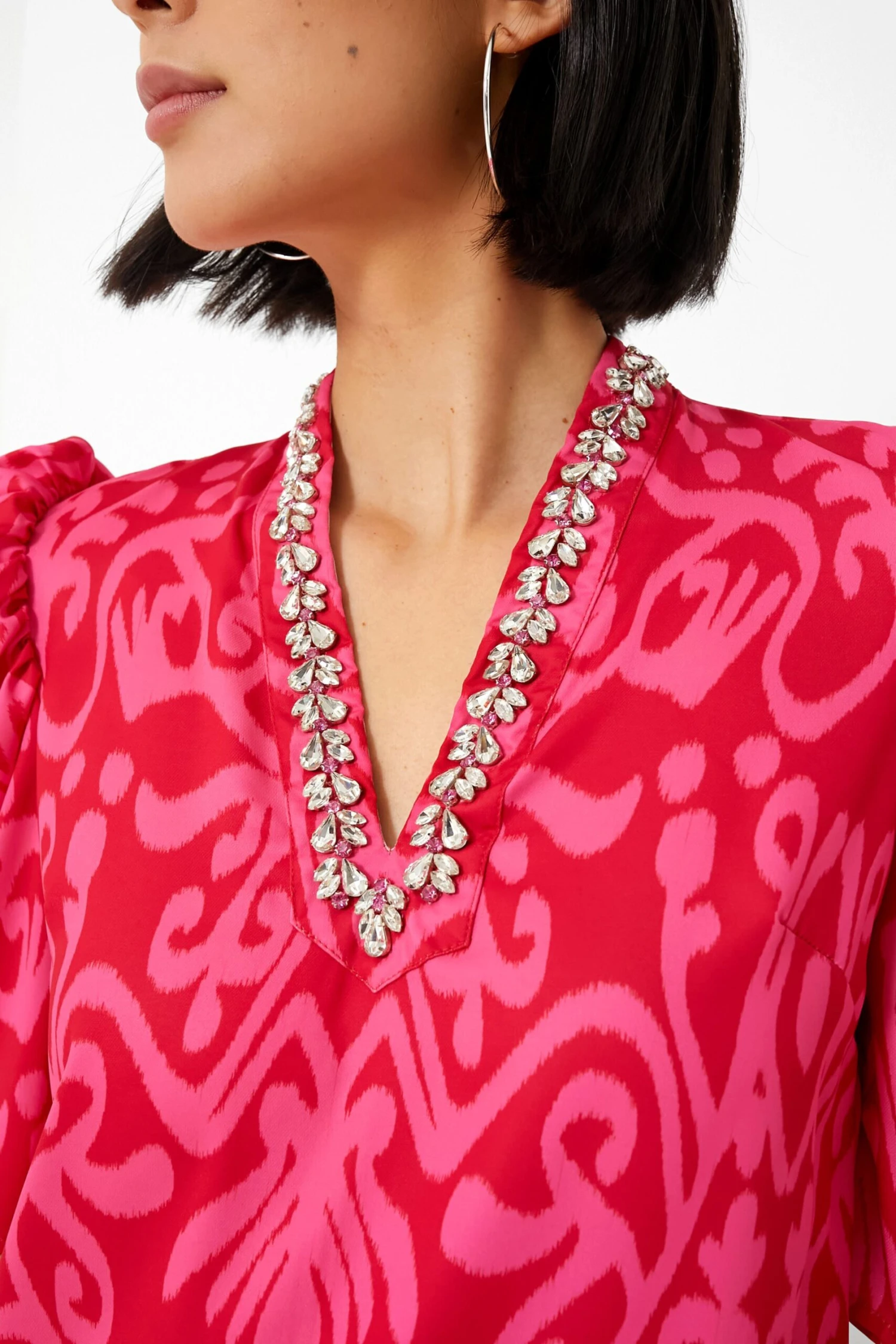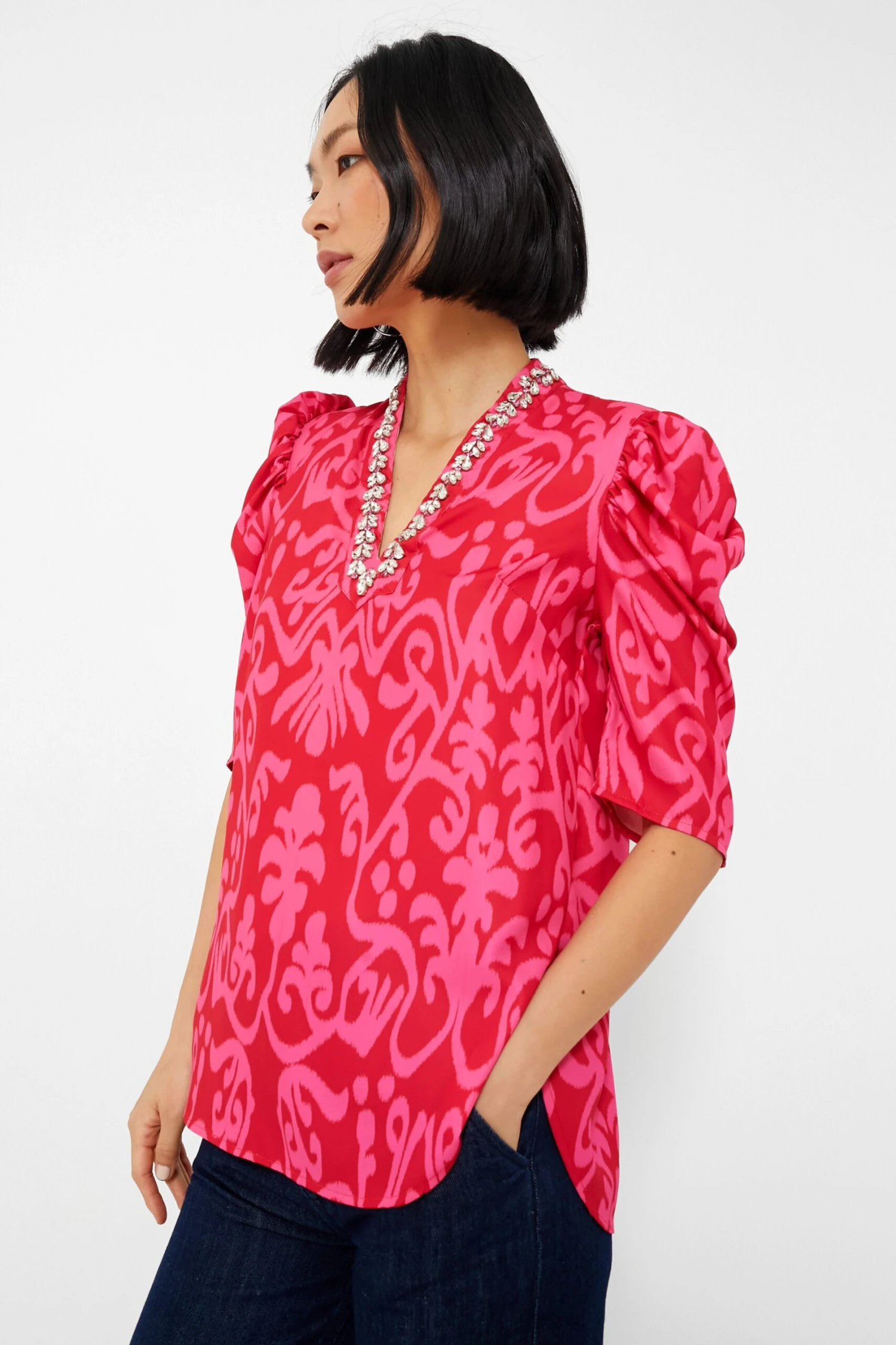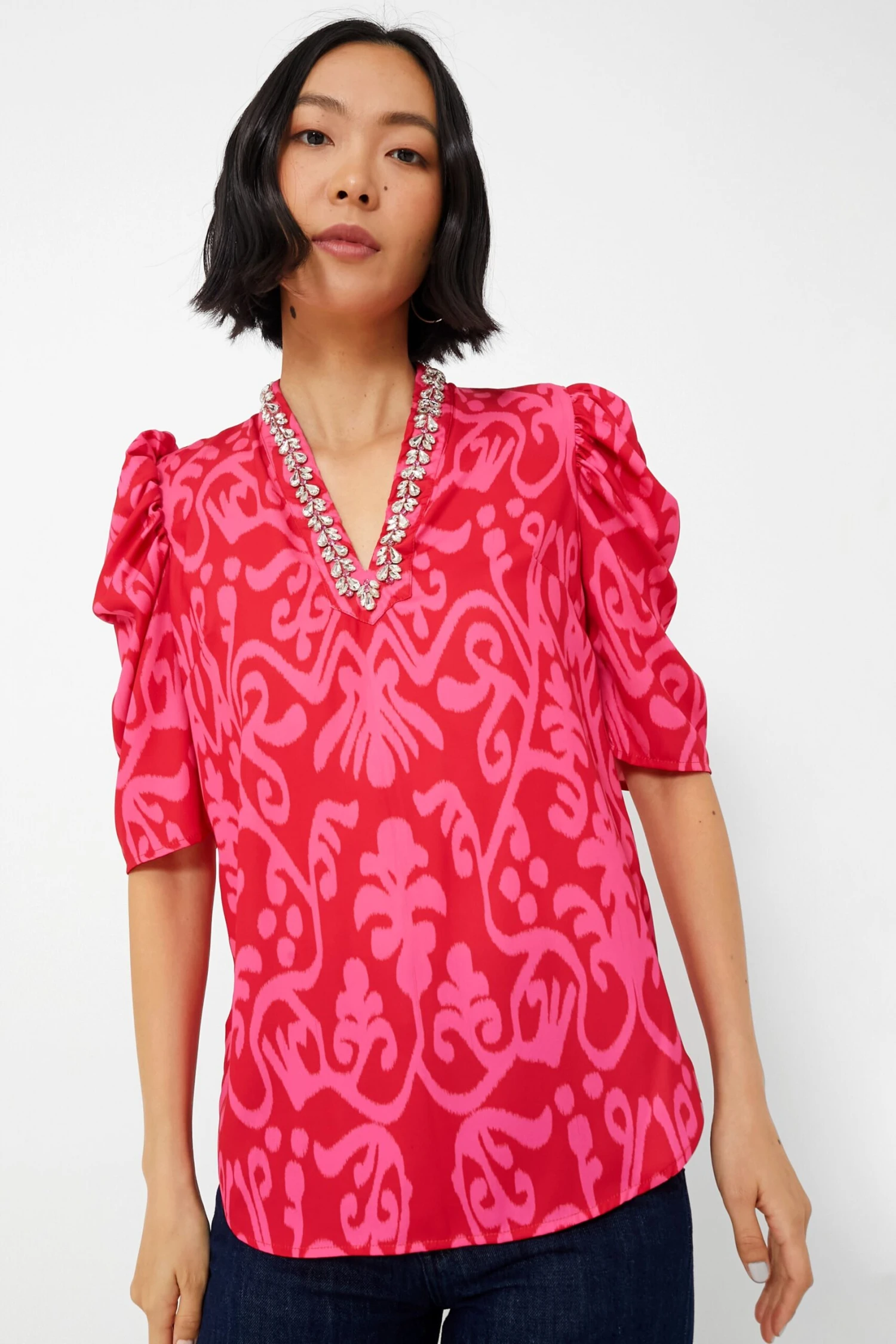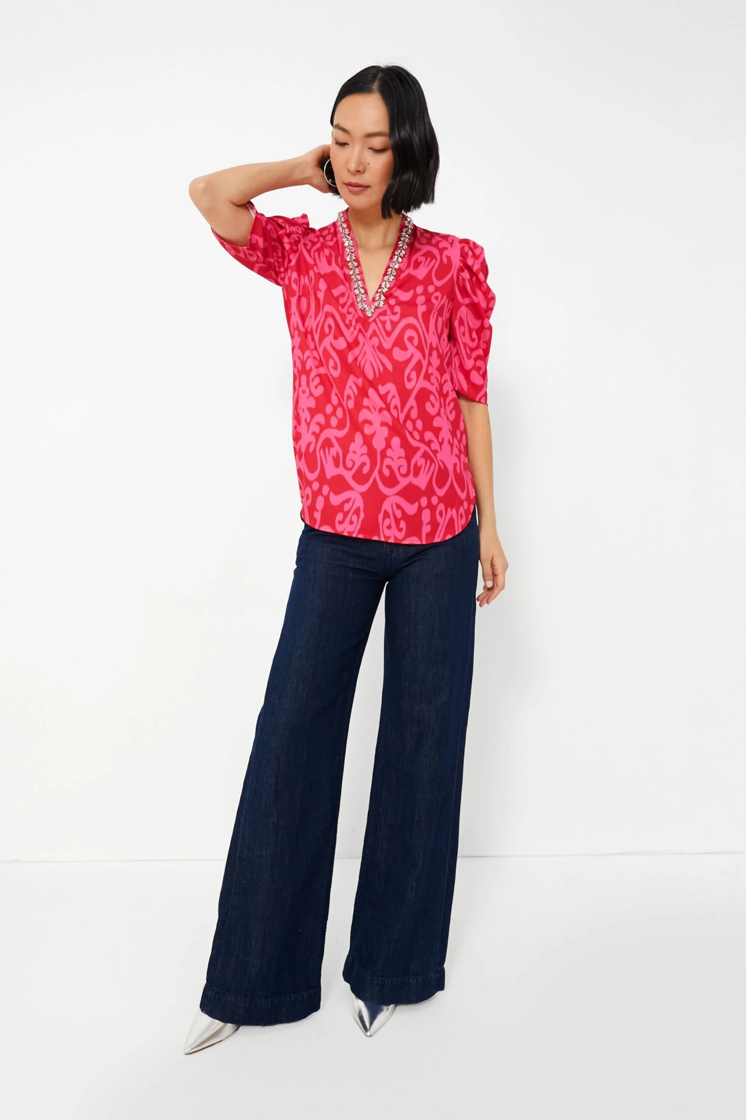 For the girly girl in all of us, the Ruby Azaleas Natalie Blouse is bright, bold, and beautiful. Complete with a fantastical print, hand-embellished crystals at the neckline, and fabulously textured puff sleeves with dramatic ruching, there is nothing not to love about this style. Pair it with wide leg denim and heels for date nights or meeting your besties for a post-work cocktail!