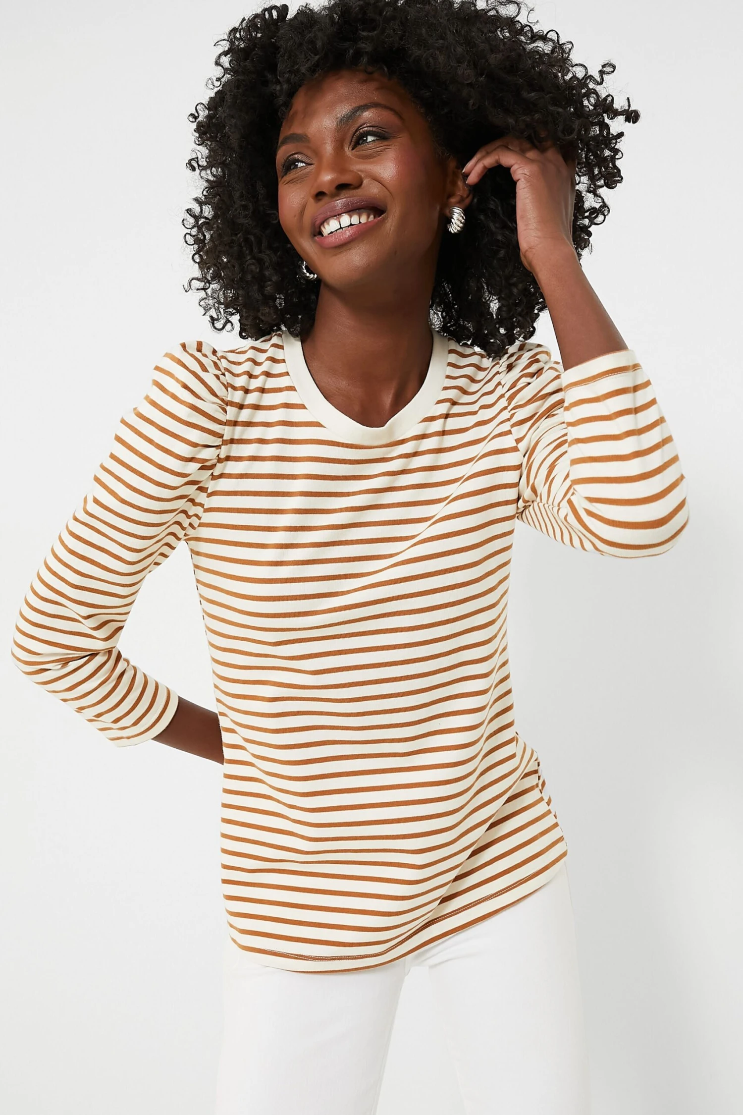The Tan Striped Vesty Long Sleeve Crewneck will instantly become one of your everyday essential go-to’s. Featuring a classic crewneck fit with a twist, this style adds the perfect flair with slightly puffed sleeves. Pair with denim and gold jewelry for an easy cool-girl look all year long.