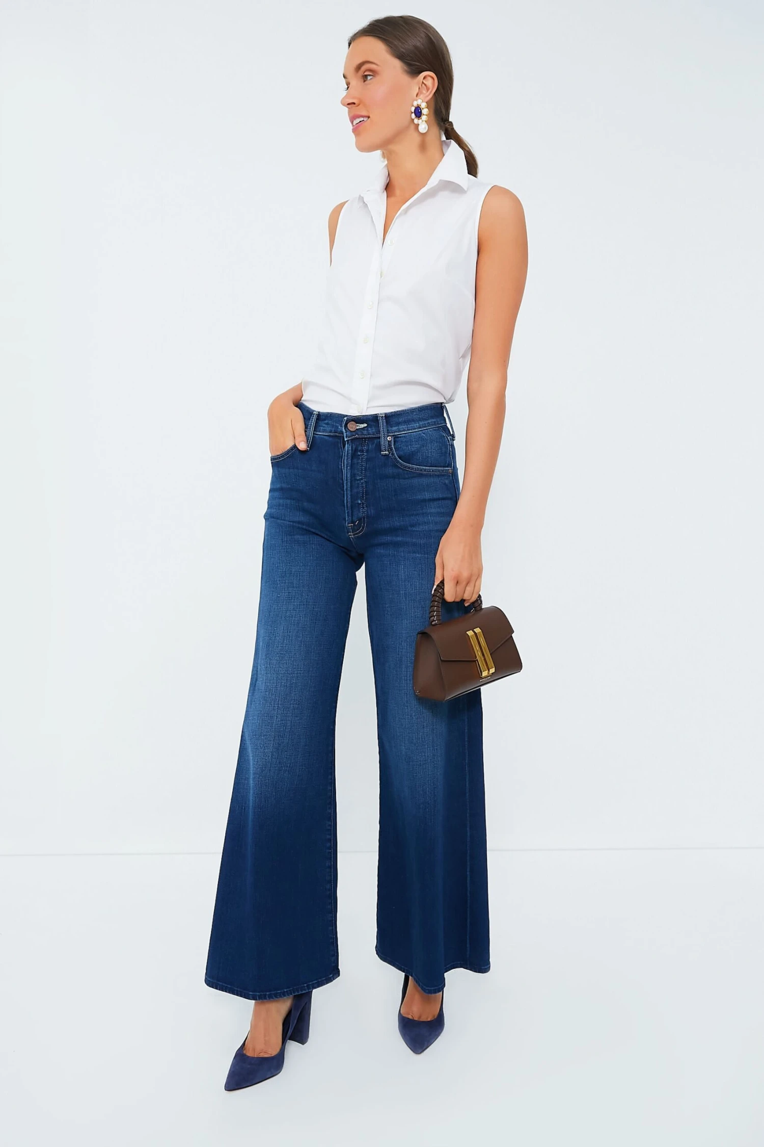 Say hello to easy layering with the White Sleeveless Essentials Shirt. Made from crisp white cotton with just a hint of stretch for the perfect fit, this button down is a must-have basic in every closet. Wearable four seasons a year, it is summer-ready when paired with linen shorts for an elegant look, or works great under a chunky knit with the collar poking through in colder weather.
